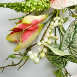 Realistic artificial plants by Leaf. Artificial pink lily garland. Foliage width as we have it arranged is 180cm x 30cm x 20cm approximately when totally outstretched from end to end. Stems are plastic and flowers are silk. This is arrangeable and it is wired inside the stems so you can shape the garland to fit your space. This is a handmade item and there are minor differences between garlands.Part of our range of realistic plants and trees.