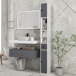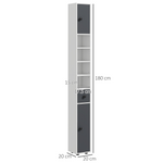 Tall and slim storage cabinet: 180 x 20cm size makes this design ideal for smaller bathroom spaces - an efficient piece. Multi-storage: Slim bathroom cabinet features top and bottom cupboard, drawer and four open shelves...