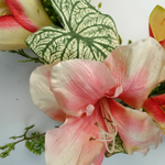 Realistic artificial plants by Leaf. 60cm Large Luxury Pink Blossom Floristry Wreath. Size including foliage when arranged is 60cm diameter. Woven base measures 42cm. Ideal for all door sizes. We have matching garlands available if you need a set.Part of our range of realistic plants and trees.