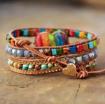 7 Chakra Heart Wrap Leather Bracelet