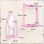 AIYAPLAY Kids Clothes Rail, Kids Dressing Mirror with 360° Rotating, 2 Piece Kids Furniture Set with Storage Shelves, Pink