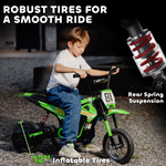 AIYAPLAY Kids Electric Motorbike, 24V Ride On Motorcycle with 3 Speeds and Rear Suspension, Dirt Bike for 8-12 Years Old, Green