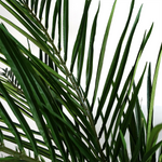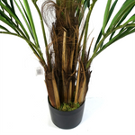 Artificial Areca palm tree. This tree has silk leaves and natural additions at the base which make it look really realistic. As we have it arranged in our photos this measures 150cm x 110cm x 110cm � this is quite a wide large tree. The branches are wired and so the leaves can be shaped to fit your space if you need it to be narrower or wider. It comes potted in a weighted black plastic pot (measuring 18cm (d) x 14cm (h) approx.) These trees look most impressive if you put them inside a decorative planter and cover the top with gravel or soil.