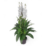Leaf Design orchid plant. Measures: 100cm tall x 40cm x 40cm. The overall measurement is given at the tallest point as measured from the floor. This plant is potted in a plastic weighted pot. Leaf...