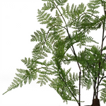 Leaf Design artificial plant. Measures: 150cm tall x 60cm x 60cm. The overall measurement is given at the tallest point as measured from the floor. This plant is potted in a plastic weighted pot. This artificial moss base natural fern plant measures 150cm tall x 60cm x 60cm when arranged as we have it in our pictures. Comes fully potted in a plastic pot - ready to display (planter measures 20cm wide x 17cm tall). Fully wired stems ready to be arranged to fit your space perfectly. Pot material: Plastic. Leaves: Plastic.
