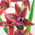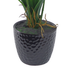 Leaf Design orchid plant. Measures: 50cm tall x 50cm x 50cm. The overall measurement is given at the tallest point as measured from the floor. This plant Comes in a ceramic pot as shown. Plant measures 50cm (h) x 50cm (w) as we have it arranged in our photos. The stems are wired and so this can be adjusted to fit your space perfectly. Comes fully potted in a ceramic planter as shown. The planter measures 12cm (d) x 9cm (h) approx. Flowers are synthetic and leaves are wired plastic.Fake fixed imitation soil. Ready to display.