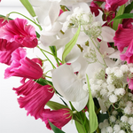 White phalaenopsis orchid artificial flower stems. Can be used to make arrangements with our other artificial flowers or as decorations on their own. Each stem measures 100cm overall height x 16cm wide x 10 deep and has 7 flowers. The stems are wired so these can be shaped and bent to arrange. These are easy to cut down shorter using a pair of wire cutters if required. Some of our photos show vases to give an idea of size and possibilities for arrangement but no vases or planters are included with these flowers.