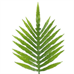 Leaf Design Product. Green Artificial Palm plant leaves. Can be used to make arrangements with our other artificial flowers or as decorations on their own. Each leaf measures 95cm overall x 35cm wide. The stems are wired so these can be shaped and bent to arrange. These are easy to cut down shorter using a pair of wire cutters if required. Some of our photos show vases to give an idea of size and possibilities for arrangement but no vases or planters are included with these leaves.