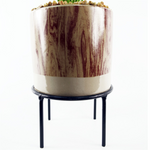 Leaf Design artificial plant. Measures: 35cm tall x 24cm x 24cm. The overall measurement is given at the tallest point as measured from the floor. This plant comes in a Ceramic planter, metal stand. Plastic artificial grass in a decorative ceramic planter - ready to display straight out of the box. This comes with a separate small metal stand that the planter can sit on top of. As arranged in our photos it measures 35cm x 24cm x 24cm. The decorative ceramic planter measures 10cm (h) x 12cm (w). The metal stand is 7cm tall. The leaves are plastic. The ceramic decorative planter is topped with fixed pebbles for an attractive low maintenance finish.