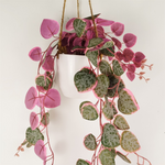 Leaf Design product. Artificial replica of a Ceropegia woodii or String of Hearts plant. Comes potted in a white plastic decorative hanging pot with jute string attachments (30cm long), ready to display. Leaves are silk...