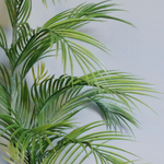 Botanik artificial plant. Measures: 90cm tall x 70cm x 50cm. The overall measurement is given at the tallest point as measured from the floor. This plant comes in a Plastic decorative planter. A gorgeous artificial palm in a decorative plastic planter - ready to display staight out of the box. 14 large leaves and four small leaves. The stems are wired and the leaves can be shaped to fit your space. As we have the palm arranged in our photos it measures 90cm x 70cm x 50cm. The decorative grey plastic planter measures 15cm (h) x 15cm (w). The leaves are plastic. The decorative planter is topped with fixed pebbles for an attractive low maintenance finish.
