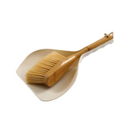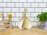 A useful cream polypropylene dustpan and wooden brush with synthetic bristles featuring a jute hanging loop. This attractive item is part of our 'Kind Home' range. Measurements: D7 x H33 x W21cm