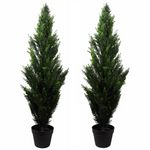 Price is for a Pair of these trees. These artificial cedar trees are UV protected and designed for outdoor use. They have ultra realistic foliage and they are certainly easy to mistake for the real thing. There are no natural components on these trees - the central stem is metal bound together for a strong- durable tree. These look fantastic when placed inside a large tub or planter and are suitable for use both indoors and outdoors. Measures 120cm (4ft) from base to top and 35cm wide when arranged as shown in our photos. This tree has 756 leaves and is UV resistant. These artificial cedar trees are available in a range of sizes. This tree can be used indoors or outdoors in a sheltered spot. We recommend protecting from extremes of temperature to extend life. Stems are wired so this can be arranged to fit your space perfectly. It is highly realistic with botanically accurate foliage. Our fake cedar trees look very realistic even down to the slightly lighter green tips of the leaves. It comes potted in a plain plastic pot and is ready to display. You can easily put this inside a larger planter if you wish then cover with gravel or bark for a realistic effect. The plastic pot this comes in measures 17cm x 14cm.