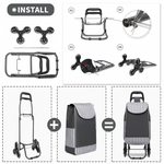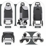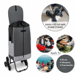 The shopping trolley also features a non-slip handle, side pockets, small back pocket with a zipper for your personal belongings and a foldable metal buckle design.