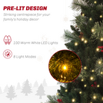 Light up your holiday spirit with the HOMCOM realistic Christmas tree with lights! It comes with pre-lit warm white LED lights across eight dazzling modes. Its flame-retardant branches ensure a safe, festive glow, transforming any space into a winter wonderland. Set on a stable base, this fake Christmas tree is the centrepiece your holiday celebrations deserve.
