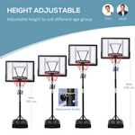 Turn any space into a personal basketball court, thanks to this portable basket ball hoop from HOMCOM. The wheels at the bottom offer easy movement, whilst its adjustable height ensures everyone gets involved, no matter the height, age or skill level. Its shatter-resistant backboard withstands heavy impact – great for constant use. Whether it's solo training, competitive matches or just a bit of fun, you'll enjoy hearing that ball swoosh through the net.