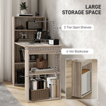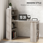 HOMCOM 120cm Computer Desk, Wooden PC Laptop Table with 6-Tier Storage Bookshelves, Home Office Working Study Desk, Writing Workstation, Grey