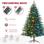 HOMCOM 2.1m/7ft Artificial Christmas Tree with 400 Multicoloured LED Lights, 8 Modes and Remote, Hinged Pre Lit Xmas Tree with Metal Stand for Party Decoration, Green