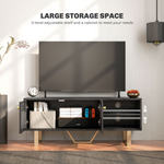 • Large storage space: This black TV stand is equipped with plenty of storage space, including two open shelves and a cupboards with doors, so your movies, games and media devices will find their place. And the middle shelves can be adjusted up and down to meet your different storage needs.