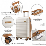 K2091L - Kono Multi Texture Hard Shell PP Suitcase 3 Pieces Set - Classic Collection - Cream