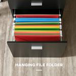 - Three drawers: The top two drawers of the side file cabinet can store your papers, work, stationery and more - keeping everything you need close by. The bottom drawer can be used for hanging A4 files.