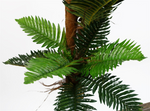 Artificial Large natural trunk palm tree. This tree has plastic leaves and a natural covered trunk design which make it look really realistic. As we have it arranged in our photos this measures 150cm x 70cm x 70cm � this is quite a wide large tree. The branches are wired and so the leaves can be shaped to fit your space. It comes potted in a weighted black plastic pot (measuring 16cm (d) x 13cm (h) approx.) These trees look most impressive if you put them inside a decorative planter and cover the top with gravel or soil.