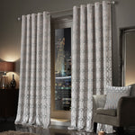 Luxe Geo Velvet Eyelet Curtains Champagne Thermal Insulated Soundproof Light Blocking Drapes for Bedroom & Lounge by OLIVIA ROCCO