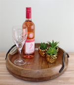 A beautiful set of 2 solid wooden bowls with stylish metal handles. These fantastic bowls can be used for display purposes, as fruit bowls, to store trinkets and so much more! Made of high quality mango wood with black metal handles. Size of large bowl W33 D33 H6.5 (with handle 10cm high). Size of small bowl W28 D28 H6.5 (with handle 10cm high). Measurements: 33 x 6.5 x 33cm