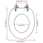 This toilet seat, with its spectacular look, will be an eye-catcher in any bathroom. It will not only add a touch of style to your bathroom, but also is highly durable. Its MDF lid and seat are sturdy and hard-wearing. The hinges are made of extra strong and durable chrome-zinc alloy. This toilet seat fits all common toilet bowls as the hinges can be adjusted in width from 12 to 20 cm. It is also simple to install and easy to clean.