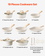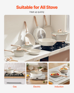 VEVOR 19 Piece Pots and Pans Set Nonstick, Granite Cookware Set, Induction Cookwares, Kitchen RV Cooking Sets with Frying, Sauce, Saute, Tempered Glass Lids, and Pan Protectors, White