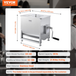 VEVOR Manual Meat Mixer, 80L Fixed Tank Meat Processing Equipment(Mixing Max 80LBS for Meat), Stainless Steel Meat Mixer, Sausage Mixer Machine with Lid Handle Gear Reducer, Ground Beef Hand Mixer