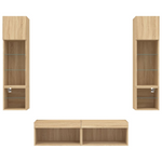 These TV wall units are the perfect solution for your living space to maximise space and keep the floor areas uncluttered. Sturdy material: The engineered wood is of exceptional quality with a smooth surface and also features strength, stability and resistance to moisture.RGB LED lights: The TV unit is equipped with vibrant RGB LED lights. With various customisable menus, you can effortlessly change the colour of the lights and even set them to adjust automatically. These LED lights not only enhance the contemporary look of the floating TV cabinet but also add to its trendy appeal.Wall-mounted design: The television unit can be wall-mounted to add extra storage space. That way, you can maximise your floor space and keep the area clean.Ample storage space: The floating TV unit provides ample space to store your daily essentials such as books, DVDs, magazines, media supplies and other items neatly organised and within easy reach.Versatile design: You can use it as a TV cabinet or mount it on the workplace wall for convenient storage of tools or other miscellaneous items. Also, it transforms an empty wall into a design feature. Good to know:Screws and plugs for inside the wall are not included. We advise to find and use screws and plugs suitable specifically for your walls. If you're not sure, you can consult with a professional. Please read and follow each step of the instructions.The product has a USB connector that requires a certified 5V USB power source (not included).
