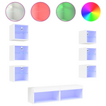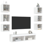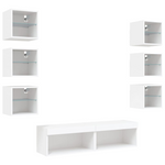 These TV wall units are the perfect solution for your living space to maximise space and keep the floor areas uncluttered. Sturdy material: The engineered wood is of exceptional quality with a smooth surface and also features strength, stability and resistance to moisture.RGB LED lights: The TV unit is equipped with vibrant RGB LED lights. With various customisable menus, you can effortlessly change the colour of the lights and even set them to adjust automatically. These LED lights not only enhance the contemporary look of the floating TV cabinet but also add to its trendy appeal.Wall-mounted design: The television unit can be wall-mounted to add extra storage space. That way, you can maximise your floor space and keep the area clean.Ample storage space: The floating TV unit provides ample space to store your daily essentials such as books, DVDs, magazines, media supplies and other items neatly organised and within easy reach.Versatile design: You can use it as a TV cabinet or mount it on the workplace wall for convenient storage of tools or other miscellaneous items. Also, it transforms an empty wall into a design feature. Good to know:Screws and plugs for inside the wall are not included. We advise to find and use screws and plugs suitable specifically for your walls. If you're not sure, you can consult with a professional. Please read and follow each step of the instructions.The product has a USB connector that requires a certified 5V USB power source (not included).