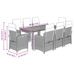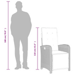 Enjoy a cup of coffee or have a chat with your family and friends in the garden, backyard, or on the balcony with this comfortable garden dining set! Durable material: PE rattan, also known as poly rattan, is a strong, low-maintenance synthetic material that looks like natural rattan. It's lightweight, easy to clean, and commonly used for outdoor furniture due to its durability and weather-resistant properties.Adjustable backrest and footrest: This garden seat has a handle. You can adjust the backrest and footrest to any position by pulling the handle, and quickly return them to their original positions.Comfortable seat experience: This outdoor furniture, complete with thickly padded cushions, offers a comfortable seating experience.Removable and washable cover: These seat cushions feature removable covers for easy washing and maintenance. The back cushions have a flap at the back for easy attachment to the backrests. Stable and easy-to-clean tabletop: This garden table has an acacia wood top that is sturdy, durable, and easy to clean with a damp cloth. Good to know:To make sure your outdoor furniture stays beautiful, we recommend protecting it with a waterproof cover.