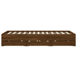 Add a modern touch to your bedroom with this bed frame with drawers! It makes a practical and decorative addition to your living space. Durable material: The bed frame is made of engineered wood. The engineered wood is of exceptional quality with a smooth surface and also features strength, stability, and resistance to moisture.Sturdy slats: The plywood slats provide good weight distribution, ensuring that the mattress stays in place with every twist and turn of your body during sleep.Storage function: The included bed drawers provide ample storage space for storing your essentials, keeping your room clean and tidy. Good to know:A mattress is not included with this bed. We do offer a various selection of mattresses. You can check our shop for a matching mattress.