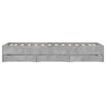 Add a modern touch to your bedroom with this bed frame with drawers! It makes a practical and decorative addition to your living space. Durable material: The bed frame is made of engineered wood. The engineered wood is of exceptional quality with a smooth surface and also features strength, stability, and resistance to moisture.Sturdy slats: The plywood slats provide good weight distribution, ensuring the mattress stays in place with every twist and turn of your body during sleep.Storage function: The included bed drawers provide ample storage space for storing your essentials, keeping your room clean and tidy. Good to know:A mattress is not included with this bed. We do offer a various selection of mattresses. You can check our shop for a matching mattress.