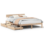 Get a better restful night's sleep from this bed frame! It makes a welcoming addition to any bedroom. Stable and long-lasting frame: Solid pinewood is known for its strength and durability. Its straight grains and distinctive knots contribute to its rustic charm.Slatted base for optimal support: The bed frame is equipped with a slatted base for support and breathability for your mattress.Make full use of space: This bed frame features two drawers underneath, providing storage for items like extra bedding, seasonal clothing, and toys.Effortless manoeuvrability: This under-bed storage drawer features four wheels, providing smooth and effortless manoeuvrability for sliding in and out from beneath your bed. Good to know:A mattress is not included with this bed. We do offer a various selection of mattresses. You can check our shop for a matching mattress.