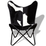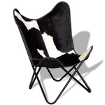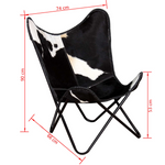 Our vintage-style butterfly chair, made of real cowhide leather, has been ergonomically designed for full relaxation after a busy day. Its iconic butterfly design is very popular and will suit any setting. This classic leather butterfly chair features a gently curving backrest and seat, which ensures that your is sufficiently supported in the utmost comfort. Made of real cowhide leather, this retro butterfly chair is durable and built to last. The four corners of the chair are also wrapped in real leather. The sturdy, powder-coated iron frame adds to its stability and durability. The chair is lightweight and comfortable. Important note: The colours and markings of the cowhide vary from piece to piece, making each piece unique; the delivery is random.