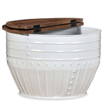 This unique, industrial wooden coffee table will make a timeless addition to your home. The unique barrel-shaped base gives the table an industrial flair. This couch table has a solid wooden tabletop, ideal for placing glasses, vases, fruits or ornaments, while the concealed storage compartment under the tabletop provides extra space to keep clutter away. The tabletop is made of solid reclaimed wood, which means that every table is unique and slightly different from the next, and has characteristics of different woods, like teak, acacia, mango wood, etc. Reclaimed wood is solid, stable, durable and beautiful. The coffee table has undergone an elaborate process of polishing, painting and lacquering. Relax and enjoy entertaining your family and friends around this unique coffee table! Note: The item is already assembled; no assembly is required. Tabletop colours may vary from piece to piece, making each of our coffee tables unique. The delivery is random, ensuring the exclusivity and individuality of your product.
