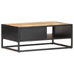 This industrial-style wooden coffee table exudes a vintage charm and is meant to be a timeless addition to your home interior. It can be used as a coffee table, side table, couch table, etc. This coffee table is handmade of rough mango wood which is solid, stable, durable and beautiful, and the craftsmanship adds to its spectacular retro style. Every step of the process is carried out with the most excellent care, be it polishing, painting or lacquering. The powder-coated iron frame adds to its sturdiness. One door with carved pattern and one open compartment offers ample space to store and organise your books, remote controls or other personal belongings, making your stuff neat and tidy. Important note: The colours vary from piece to piece, making each of our pieces unique. The delivery is random as well.