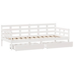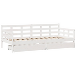 This 2-in-1 daybed with drawers, serving as both a sofa and bed, makes a practical and eye-catching addition to your living room or bedroom. Stable and long-lasting frame: Solid pinewood is known for its strength and durability. Its straight grains and distinctive knots contribute to its rustic charm.3-sided bed rails: This sleeper bed has a unique design on the side of the bed, providing a sense of security and also adding a touch of sophisticated style to your home.Slats for optimal support: The couch bed is complete with slats to offer essential support and breathability to your mattress.Rustic charm: The sofa bed gives your space rustic undertones that can be really relaxing. The calming effect of this wooden day bed turns any bedroom, guest room into a soothing place while adding a natural element to the room.Ample storage space: This guest bed has two drawers that provide ample space for storing your clothes, socks, toys, cushions, etc. Good to know:Mattresses are not included with this bed. We do offer a various selection of mattresses. You can check our shop for matching mattresses.