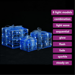 Create a touch of sparkle to your home this Christmas with these gift boxes! These lighted boxes are made of strong and shiny acrylic. The Xmas box features 48 LED lights, which are energy-efficient and long-lasting. Designed with 8 different lighting effects: a combination of all the effects, slow-glow, twinkle/flash, in wave, chasing/running water, sequential, steady on and slow fade, it beautifully lights up and creates a magical holiday atmosphere. Thanks to the stackable design, it is easy and convenient to store. The beautiful bow is removable. Additionally, the battery case is waterproof so these Christmas gift boxes can be used outdoors.