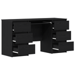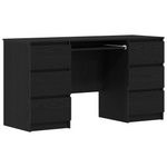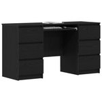 This Black Oak Writing Desk mixes function with a modern look, making it a must-have for any home office, bedroom, or study. With its smooth surface and stylish design, this desk is perfect for writing, computer work, or studying - creating a comfy and motivating space for your creativity and productivity. This desk has a sleek black oak finish that adds a modern touch to any space. With six spacious drawers, it provides plenty of storage to keep your things organised, making it easy to keep your workspace tidy. Built from quality solid oak wood, the desk is both sturdy and stylish, perfect for a modern design. Designed for indoor use only, it fits well in a variety of settings like home offices, bedrooms, and study areas, improving functionality while looking good. With dimensions of 140cm in length, 50cm in width, and 76cm in height, this desk gives you enough space for a laptop or books, making it ideal for those who want an efficient workspace.