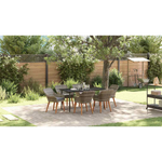 This garden dining set gives you a chic and comfy outdoor eating spot, perfect for hanging out with mates or family. It’s designed with a modern vibe that makes your garden or terrace look fab, creating a nice space for alfresco meals when it’s warm. Made from sturdy poly rattan, it fits well with both simple and fancy garden styles. Durable Materials: With high-quality poly rattan and strong steel, this set can stand up to whatever the weather throws at it all year. It’s built to resist rain, UV rays, and wear, making it perfect for your outdoor parties. You can count on it to stay sturdy and keep looking good after loads of get-togethers. UV-Resistant Quality: This set has UV-resistant materials that keep it bright and strong, stopping it from fading in the sun. So, it’ll always look good, keeping your outdoor space looking fresh no matter the season. Sleek Table Design: Check out the stunning patio table with its sleek glass top. It's easy to clean and looks great, combining style with practicality to make your outdoor dining a joy. Comfortable Seating: This dining set comes with comfy seat cushions that have handy zippers, making long meals outside a breeze. The poly rattan chairs not only look good but also focus on comfort, perfect for those lazy summer days. Care & Maintenance: To keep your set in top shape, use covers when it’s not in use. This keeps it safe from harsh weather and helps it last longer. Plus, it’s easy to care for, so you can focus on enjoying your garden space.