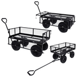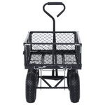 Featuring a durable and robust steel construction, this hand trolley is ideal for an array of gardening tasks. Made of heavy-duty steel, this garden cart is exceedingly stable and durable. With a maximum load capacity of 250 kg, the hand truck can easily transport flowers, leaves, logs and other stuffs. The sides panels can be opened with quick-release fasteners for easy loading and unloading. Additionally, the large heavy-duty pneumatic wheels allow you to effortless pull the trolley on uneven terrain surfaces. Padded handle ensures a firm grip as well. Please note that it is not suitable for transporting children. The garden cart liner is not included in the delivery, but can be bought in our shop.