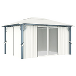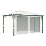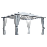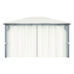 This gazebo with curtains features a classic and elegant design, which will cater the perfect sunshade shelter for outdoor events, such as dinners, BBQs, family gatherings along with other activities. The roof, made of Oxford fabric with PA painting, guards you from the glare and harmful UV rays of direct sunlight. The gazebo is solidly constructed from strong aluminium and steel, and is consequently resistant to rust and very stable. The pavilion is delivered with 4 sidewalls, which can be drawn in bad weather. Mesh screens are also included to keep bugs out while ensure the well air circulation. Hook and loop fasteners are also included for easy attachment. Additionally, the string light creates a cosy atmosphere in your garden when the sun goes down. The lights bring no pollutions to the environment as it is charged by solar energy during the day. The gazebo can be easily fixed to the ground with the included fixing accessories. Note: This product should NEVER be used under bad weather, such as strong wind, heavy rain, snow, storm, etc.