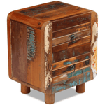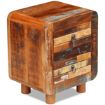 This antique-style wooden night cabinet will make a unique addition to your room. Its solid wood construction makes it stable and secure to place drinks or decorative items. Equipped with two drawers, it can store a lot of items within. It can also be used as a bed cabinet, a drawer cabinet, and an end table. Made of reclaimed wood, this cabinet is solid, durable and beautiful, and has the characteristics of different woods like mango wood, acacia, recycled wood, hard wood, etc. Every piece of this furniture is unique, and slightly different from the next. Signs of wear and visible grain structure give each piece its own history and a unique look. This bedroom cabinet is fully handmade. Every step of the process is carried out with the greatest care, be it polishing, painting or lacquering. Important note: Colours may vary from piece to piece, making each of our cabinets unique. The delivery is random, ensuring the exclusivity and individuality of your product.