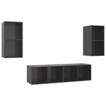 vidaXL Wall-mounted TV Cabinets 4 pcs High Gloss Grey Engineered Wood