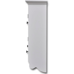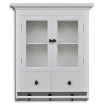 This elegant wooden wall cabinet in antique look will give you ample added storage space in the kitchen and will help to keep things organised. The cabinet has two drawers and two shelves, allowing you to easily store cereal, spices, snack foods, canned goods and more. It is equipped with 2 glass doors and 2 drawers that open easily, so you can quickly get the things you need. The hooks and pegs can be used for mugs or towels. Made of high quality wood, this cabinet is built to withstand a humid environment. The white paint finish makes it easy to clean with a damp cloth.