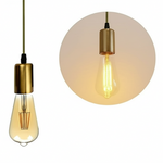 - Add timeless character to your lighting setup with this Vintage E27 Fitting Suspension Light, featuring a warm yellow brass lamp holder and matching ceiling pendant base.